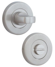 Фиксаторы WC из нержавеющей стали, подходят для внутреннего и наружного применения. За счет декоративных накладок крепежные винты не заметны. Подходят для дверей толщиной 38-52 мм. Щиток круглой формы, диаметр - 52 мм.